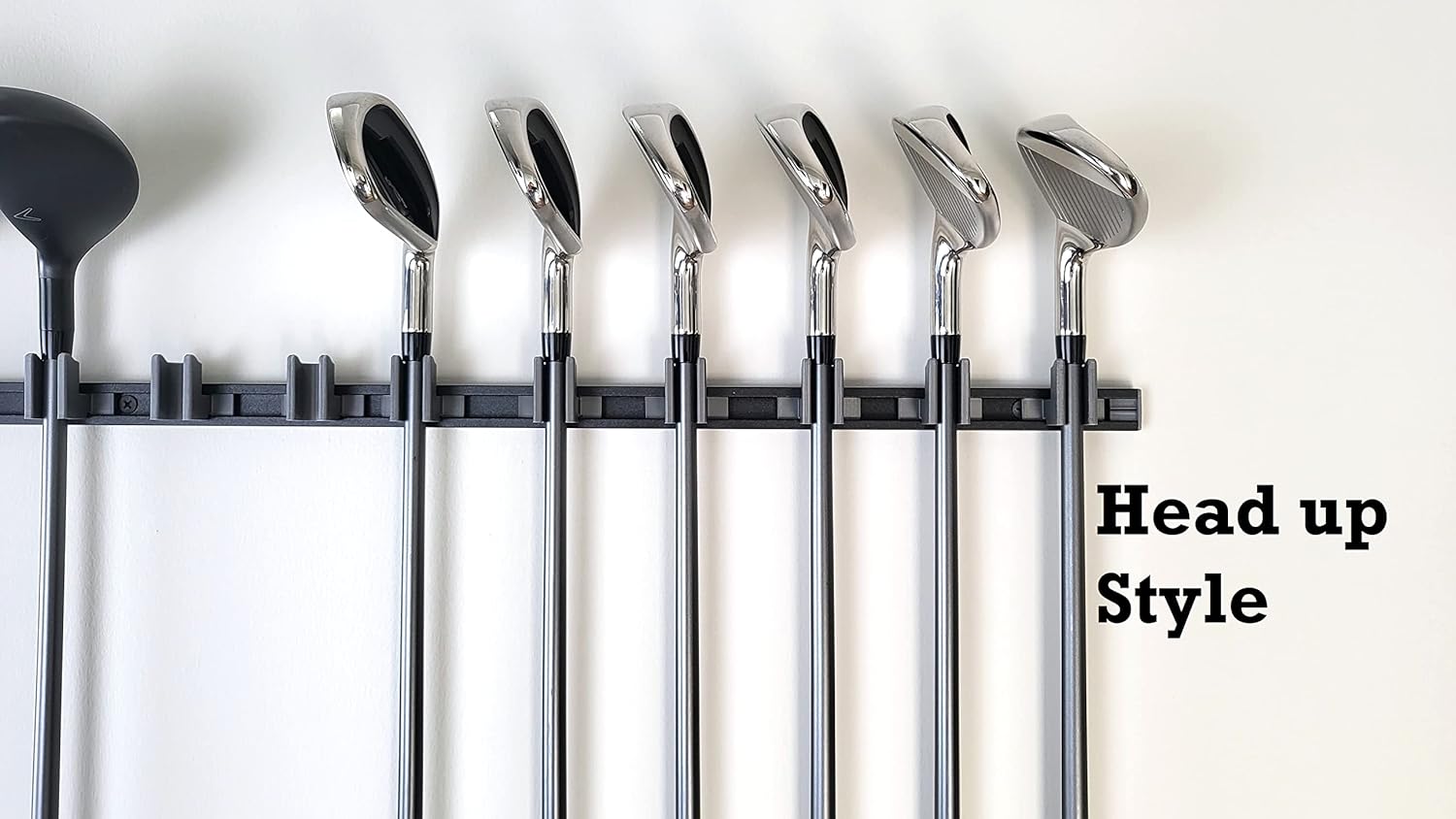 10 Golf Club holders on 24" rack, Wall display, Wall hanger, rack, mount, organizer (Club head up)