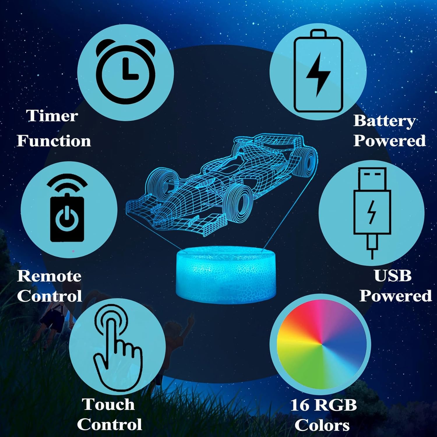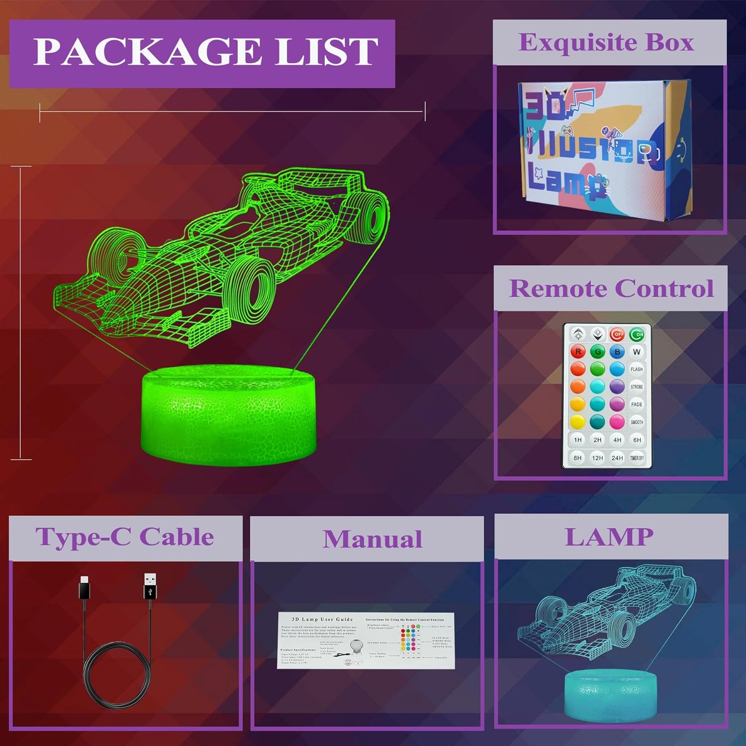 - Perfect for Gifting: This 3D car night light is ideal for celebrations, playrooms, children's bedrooms, and as a present for various occasions like birthdays, holidays, housewarmings, graduations, and Christmas. It's a charming enhancement to any space, bedroom, or nursery.