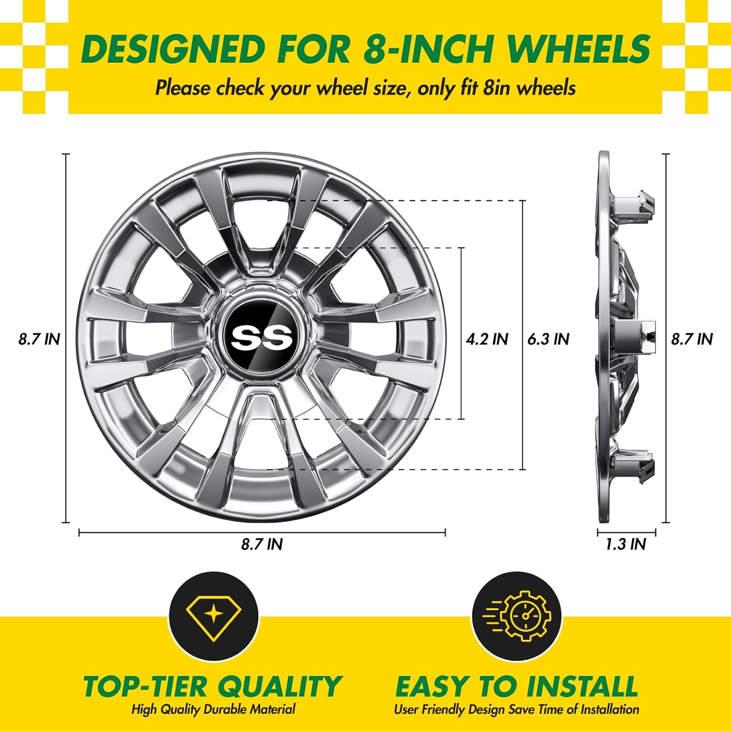 - [Compatible Models]: Golf cart SS wheel covers fit EZGO Club Car YAMAHA, fit 8 Inches wheels only, not for RXV