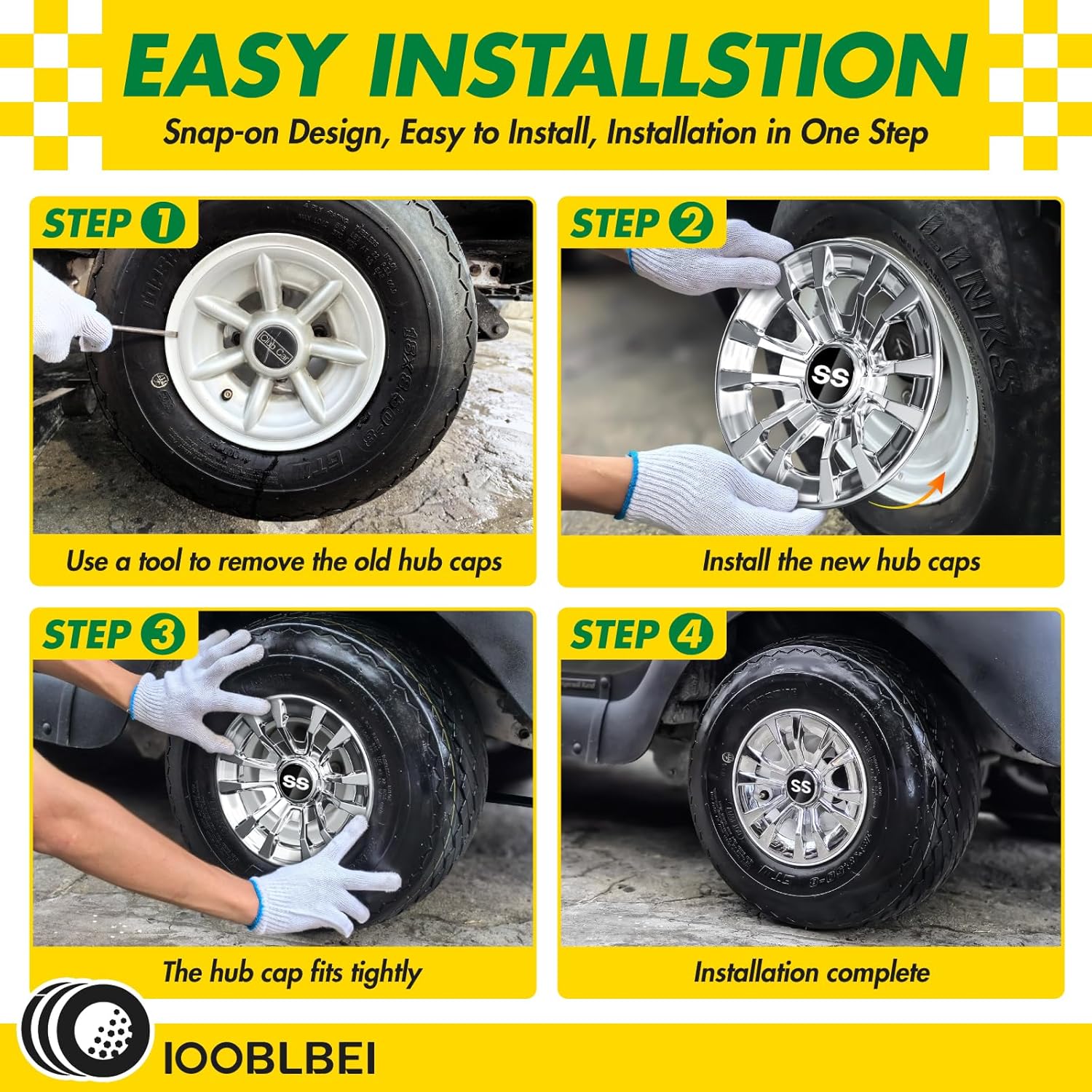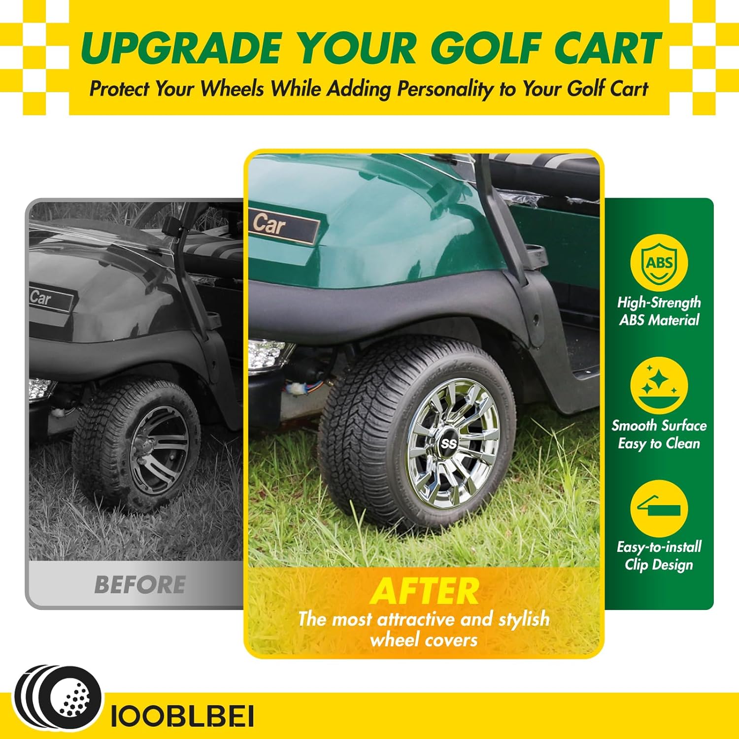 - [High-quality Material]: Golf cart wheel covers are made of high quality ABS material and non-peeling chrome plating technology, scratch-resistant and not easy to fade, long service life