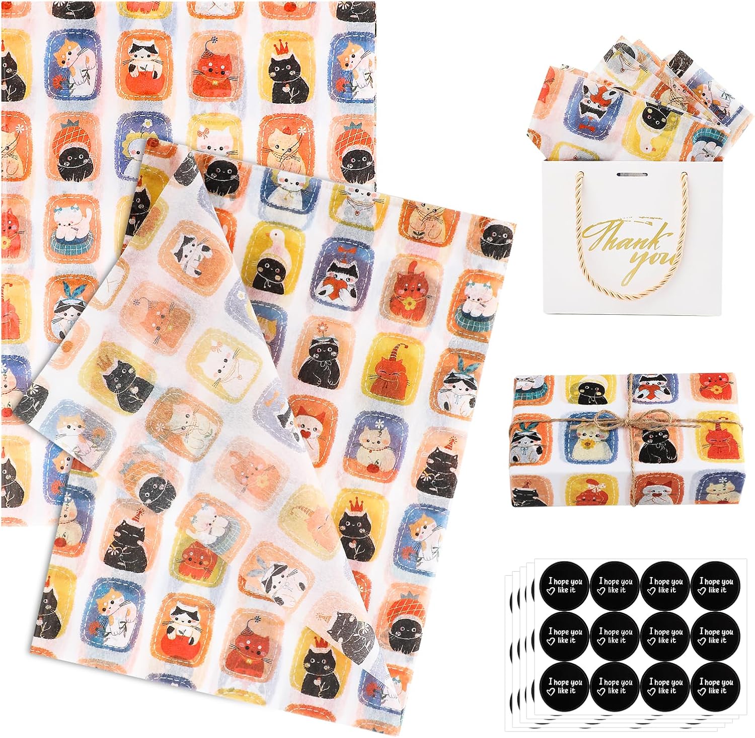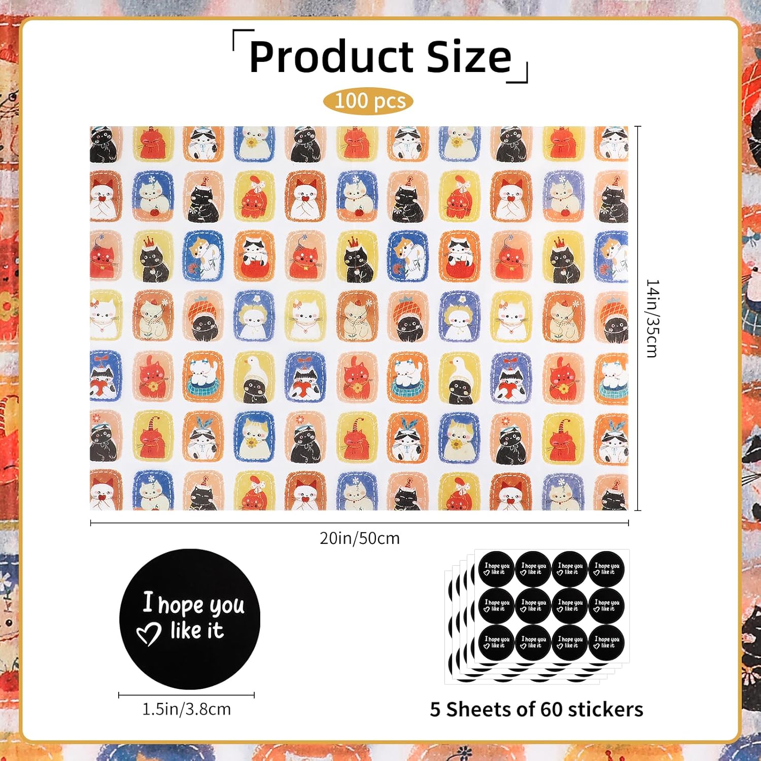 - Included Components : 100 sheets of cat-themed tissue paper and 60 matching stickers printed with “I hope you like it.”