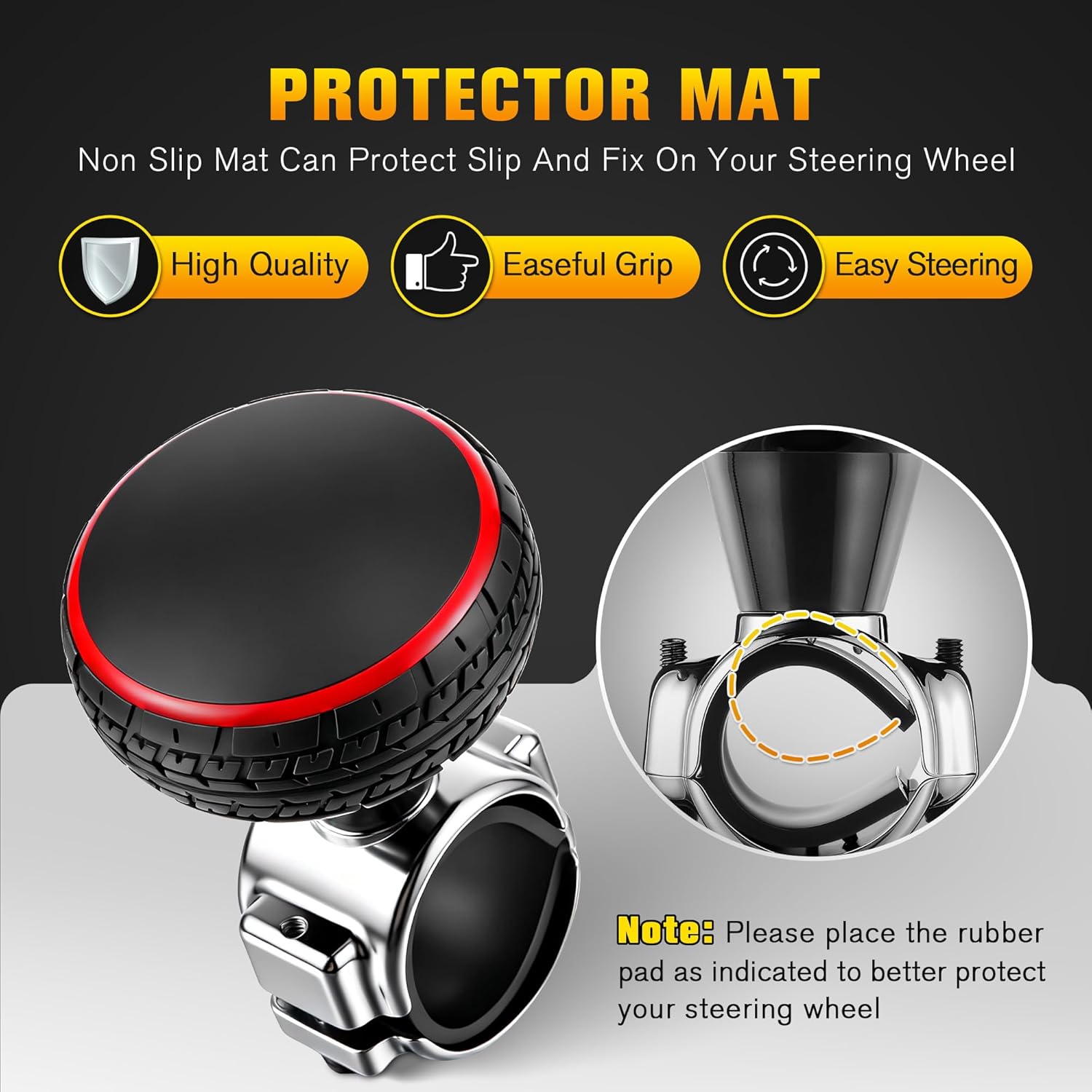 - Strong, Stable, and Non Slip: The upgraded large base and inner rubber padding provide a firm grip without damaging your steering wheel. Once installed, it stays secure and doesn't spin or slide, giving you full control while turning
